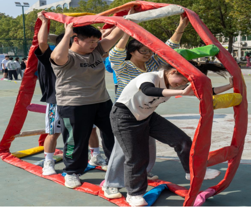 随着秦良斌老师宣布本次趣味运动会开幕,同学们在教练员的带领下一次开展各个项目。在“财源滚滚”的比赛现场,选手们争先恐后,团结一致;呼啦圈过山车中选手以各种各样的扭动方式让呼啦圈不停在队友间传递;顶天立地项目也让我们看到城建学子的聪明才智。赛场上同学们的呐喊助威声此起彼伏,每一个项目都考验着队员们的默契,两旁的加油声不断,赛场气氛十分活跃。活动现场,同学们更是邀请班主任、辅导员老师一同参与,将师生联谊也别开生面地融入到了活动中来。