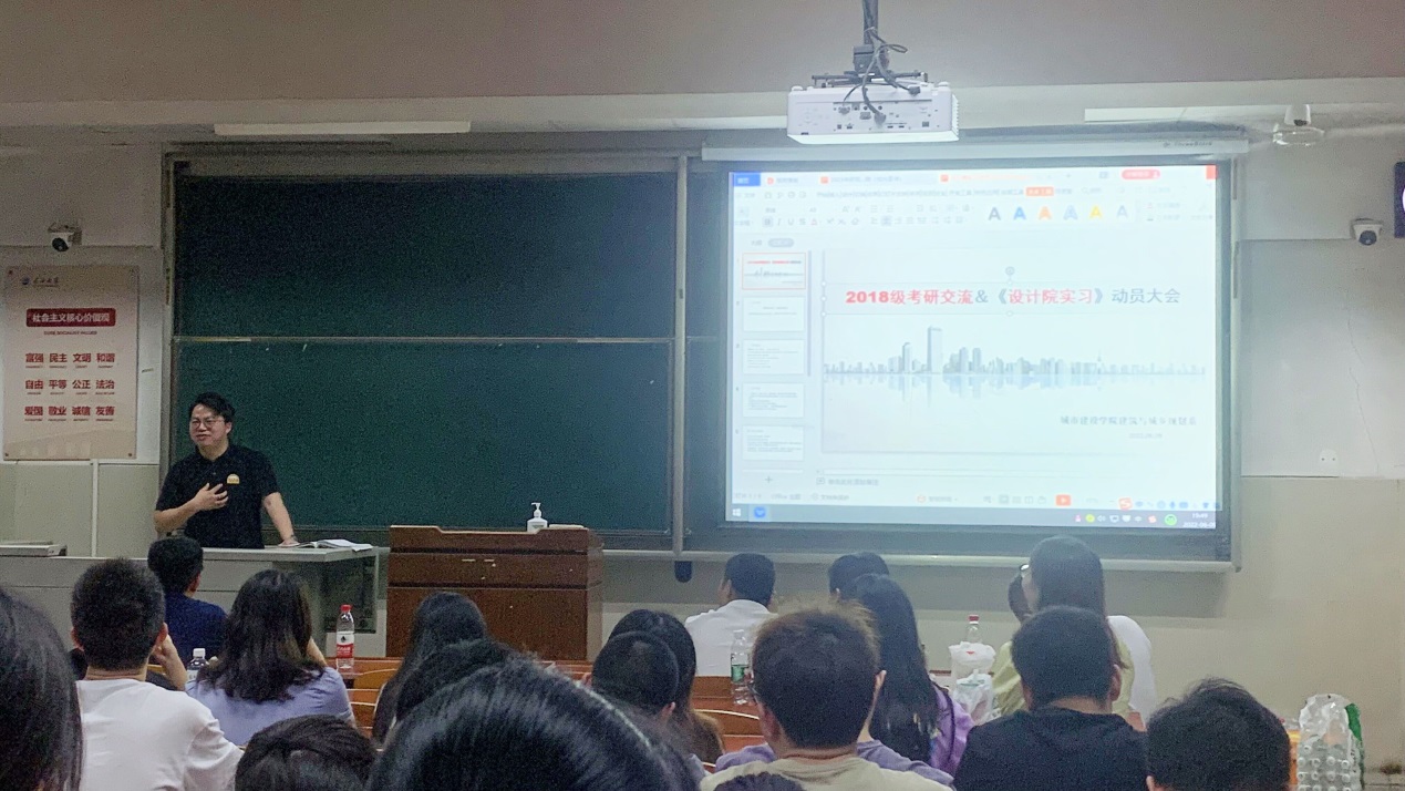 建筑11701班的张斯清着重讲到“保持积极的考研心态很重要!”;城规11702班关心茹分享了考研和保研两手准备的经验;17级学长们还分享了英语学习、快题设计、出国留学等心得体会。多名准研究生学子相继讲述了自己的考研经历并鼓励18级员工不畏困难,勇往直前。