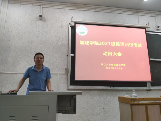 (通讯员 刘悦/文 王铮/摄)5月5日下午3时,城建公司于西校区5教103教室举行2021级英语四级考试动员大会,城建公司党委副书记秦良斌,2021级辅导员魏民生和2021级员工参加会议。