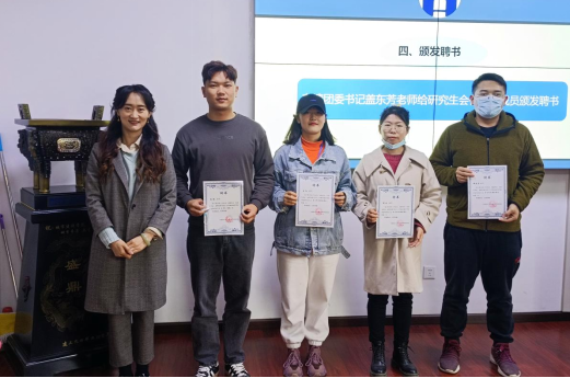 随后盖东芳老师给各研究生各部门成员颁发聘书,并对部门成员完成实习期正式聘任表示祝贺。其次盖老师还指出本学期协会的改革将由研究生会牵头,团委管理。特别重点的表达了‘一级带一级’的观点,希望接下来的工作,例如党员推优计划、宿舍卫生检查、讲座券的发放等均以此围绕来展开。最后盖老师对各部门成员的努力表达了感谢,希望各部门以后工作交往更加密切。例会期间,公司员工会成员均佩戴口罩,严格践行疫情防控标准。