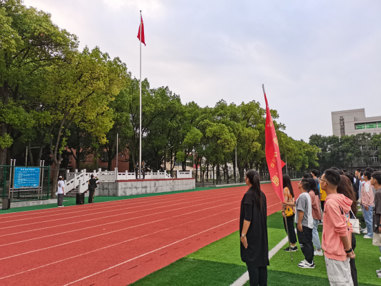 在全体师生的注目下,英姿飒爽的国旗护卫队护送五星红旗入场,伴随着庄严的国歌,五星红旗冉冉升起。全体师生行注目礼,深怀着对祖国无限的热爱和崇高的敬意。