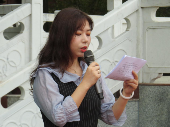 随后,学工办主任周喆老师发表讲话。首先,她强调大一新生应注重校规校纪,希望同学们在老员工活中遵守纪律,将纪律内化为自己的道德要求,从而转化为自己的自觉行为。其次,她提出“认识规律、把握规律是做好各项工作的前提”,这样有助于尽快融入老员工活,开启新的求知问学之旅。最后,她强调了自律的重要性,希望全体同学能够学会自我约束、自我控制、自我激励,能够成为能挑起重担的中坚脊梁。