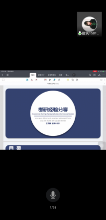 接下来,城建公司两位2020年考研优秀学子分别向同学们分享了个人考研经验。考取华中科技大学的建筑11501班王秀颖同学,从时间规划、科目备考、学习技巧及日常生活等方面详细讲述了自己近一年的考研历程。考取湖南大学的给排水11601班胡墨浓同学,结合自身实际情况,从选择公司和专业、考研规划和考研期间的心态,向学弟学妹们传授了自己成功的经验。