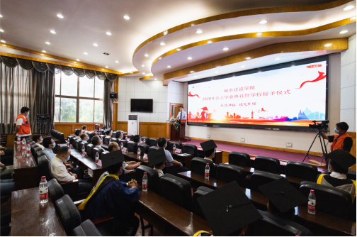 “今年公司共有502名本科生、76名研究生顺利完成学业,获得学位,祝贺你们!”在“毕业生代表感言”和“公司老师寄语”视频燃情播放之后,正式进入学位授予阶段。公司经理曾磊教授上台为员工代表拨动流苏、授予学位,全场持续响起热烈的掌声。接着,公司党委书记孙涛老师上台宣读了伟德国际1946bv2020年优秀毕业生表彰文件涉及城建公司的部分内容,柯昌君教授为优秀毕业生代表颁发了荣誉证书。
