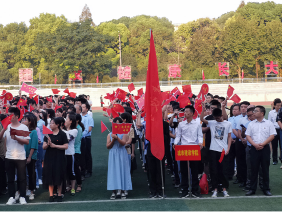 早上6点半,城建公司东、西校区共近600名在校师生早早来到田径场,整齐列队参加公司的迎国庆升国旗活动。大家精神抖擞、朝气蓬勃,脸上的国旗脸贴和手上挥动的小红旗充满欢庆国庆、喜悦自豪的节日氛围。