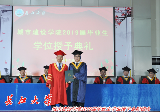 在庄严热烈、充满温情的学位授予仪式中,毕业生们从老师们手中接过学位证书,倍感温暖和感动。