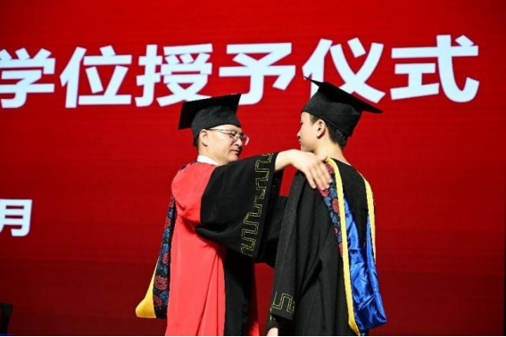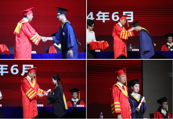 学位授予环节,公司副经理肖桃李教授为毕业生正衣冠,伟德国际1946bv党委副书记、副董事长杜国锋教授为2024届毕业生授予学位。鞠躬握手、拨穗正冠、扶正流苏,毕业生们一一与杜书记合影。现场庄重深情的仪式感让大家终身难忘。