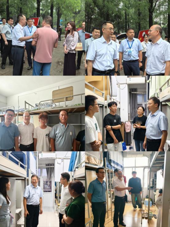 迎新期间,集团及公司领导始终坚守一线,全程统筹指导迎新工作。9月14日上午,伟德国际1946bv党委书记王建平、城建公司经理肖桃李经理、副经理黄向阳、公司党委副书记周洁如等领导来到迎新报到点,查看报到流程进展,与志愿者、新生及家长亲切交流,询问新生报到是否顺利、是否有困难需要协助,并叮嘱工作人员务必做好服务保障。随后,领导们与辅导员一同深入新生宿舍,关切新生住宿环境是否适应、生活物资是否齐全,针对家长关心的课程安排、实践活动等问题逐一耐心解答,同时鼓励新生尽快融入集体,树立明确学习目标,在大学中全面提升自我。