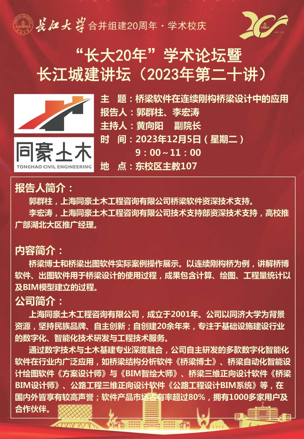 “长大20年”学术论坛暨长江城建讲坛(2023年第二十讲):桥梁软件在连续刚构桥梁设计中的应用