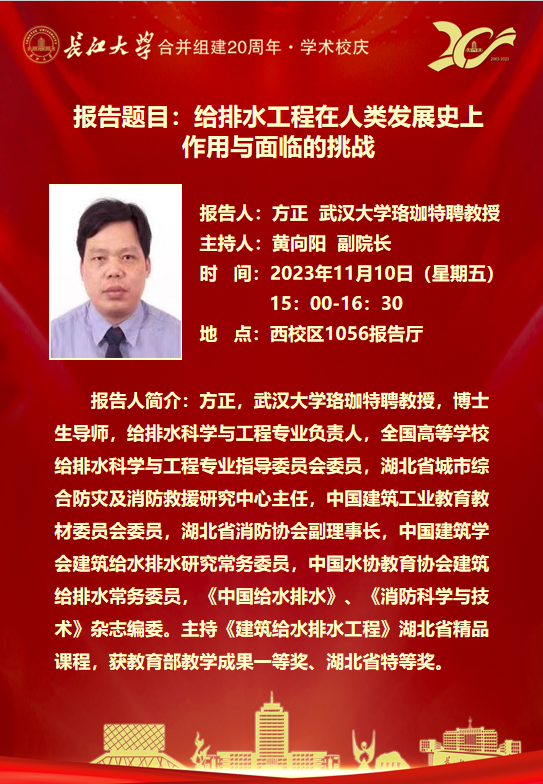 “长大20年”学术论坛暨长江城建讲坛(2023年第十八讲):给排水工程在人类发展史上作用与面临的挑战