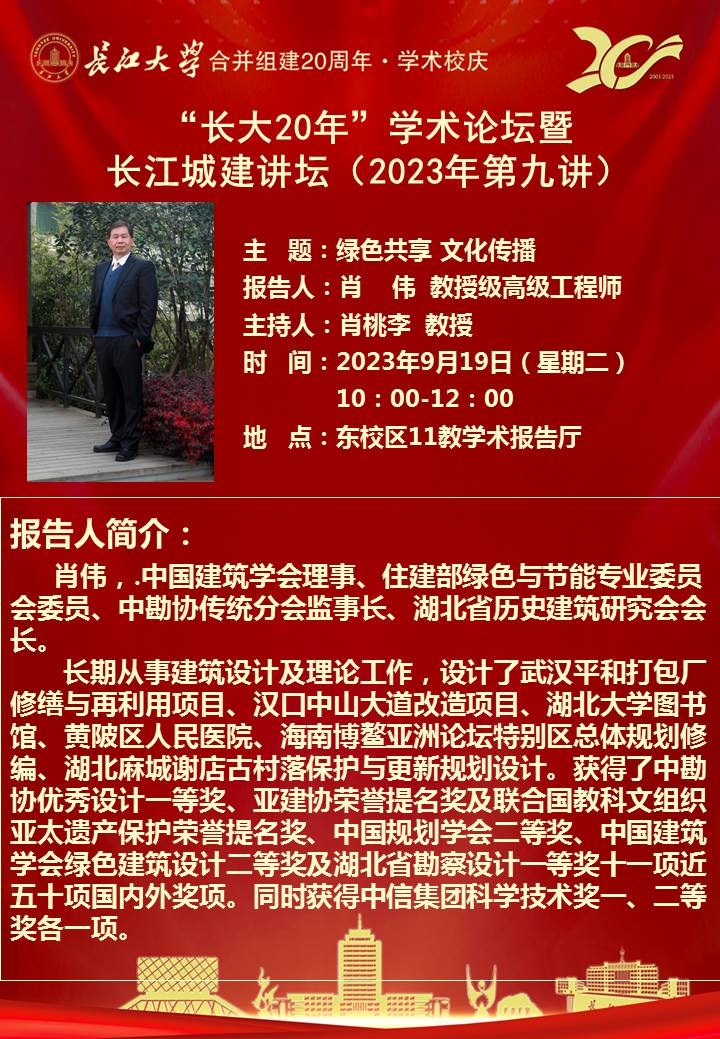 “长大20年”学术论坛暨长江城建讲坛(2023年第九讲):绿色共享 文化传播