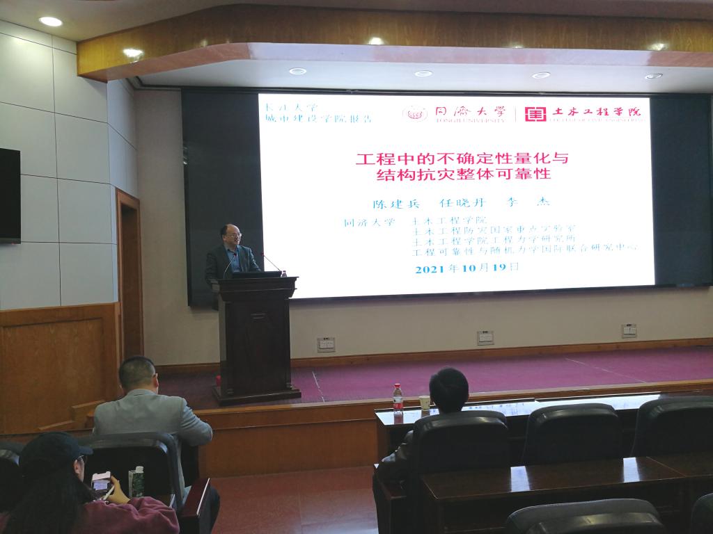 2021年10月19 日下午15:00,同济大学长期特聘教授、博士生导师,同济大学学术委员会委员、土木工程防灾国家重点实验室副主任,国家杰出青年科学基金获得者陈建兵教授为bevitor伟德国际1946的师生们带来一场主题为“工程中的不确定性量化与结构抗灾整体可靠性”的专题讲座。