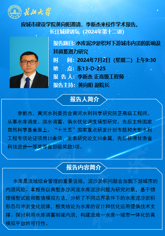 长江城建讲坛2024年第十二讲:水库泥沙淤积对下游城市内涝的影响及其调蓄潜力研究