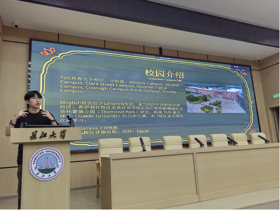 20级土木国际员工陈鑫于2023年9月赴爱尔兰香农理工大学交流访问,现已拿到伦敦大学公司(UCL)的研究生offer。陈鑫现场向学弟学妹们讲述在爱尔兰的学习生活,并在申请国外研究生的准备事项上给予建议和指导。