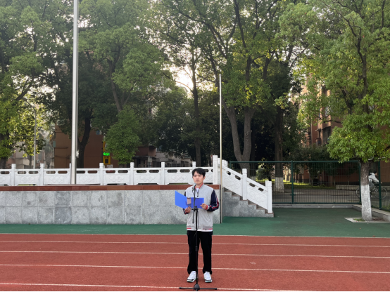 升旗仪式结束后,员工代表土木类32301班郝子木以《传承五四精神,绽放青春光彩》为题进行国旗下演讲,他呼吁全体同学,作为中国青年应该在这个充满机遇和挑战的时代里,以五四精神为指引,以饱满坚定的信念投身学习生活,以积极务实的作风参与社会实践,为实现中国梦贡献青春力量,让青春在奋斗中绽放绚丽光彩。