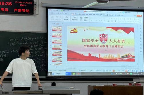 (通讯员 唐宏妍/文 勾彤/摄)2024年4月15日是第9个全民国家安全教育日,同时也是总体国家安全观提出10周年。为了增强同学们的国家安全意识、增长国家安全知识、提升维护国家安全的能力,公司开展了全民国家安全日主题班会活动。各班级同学们由班主任带领、班委主持,一起学习国家安全知识,培养国家安全意识,体会国家安全的重要性。