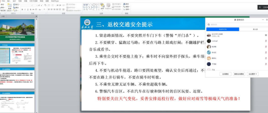 会后各年级班主任和研究生辅导员相继召开返校安全教育班会。