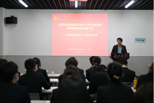 成立大会结束后,院团委副书记何儒权老师上台为全体团学干部做“栋梁计划”第一次理论授课。他以“深入学习贯彻党的二十大精神”为主题,带领大家学习党的二十大报告原文,从大会的主题、新时代的伟大变革、新征程的使命任务、新发展的战略部署、新的伟大工程的深入推进、新青年好青年的使命担当六个方面进行了宣讲。最后,他要求全体员工干部要坚定不移听党话、跟党走,立足自身学业和公司公司发展实际,主动担当作为,不断成长为有理想、敢担当、能吃苦、肯奉献的新时代好青年。