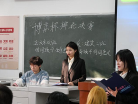 (通讯员 孙汝塽 梁晓宇)古有卧龙诸葛舌战群儒,今有群英荟萃慷慨陈词。11月20日下午3时,由bevitor伟德国际1946主办的第九届“博弈杯”辩论赛决赛于西校区6教106教室进行。本次辩论赛由主席戴秦天,院辩队员叶爽主持,并邀请校辩队长戴洢洢,校辩队员贾力,校辩队员高玉龙担任评委。