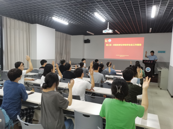 会议伊始,在何儒权老师的带领下,全体员工代表起立,奏唱国歌。随后,由员工会主席余江生、研究生员工会团委副书记杨民分别汇报本学年员工会、研究生会的工作报告。他们分别从组织建设、学风建设、思想建设、员工服务四个方面介绍了员工工作情况。工作汇报结束后,大家一致举手表决通过。