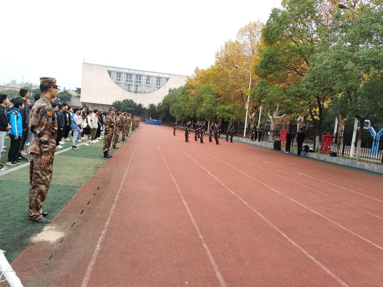 7时整,升旗仪式正式开始。国旗护卫队踏着整齐划一的步伐,护卫着鲜艳的五星红旗入场,伴随着嘹亮的国歌声,五星红旗向着朝阳冉冉升起,全体师生唱国歌,行注目礼。