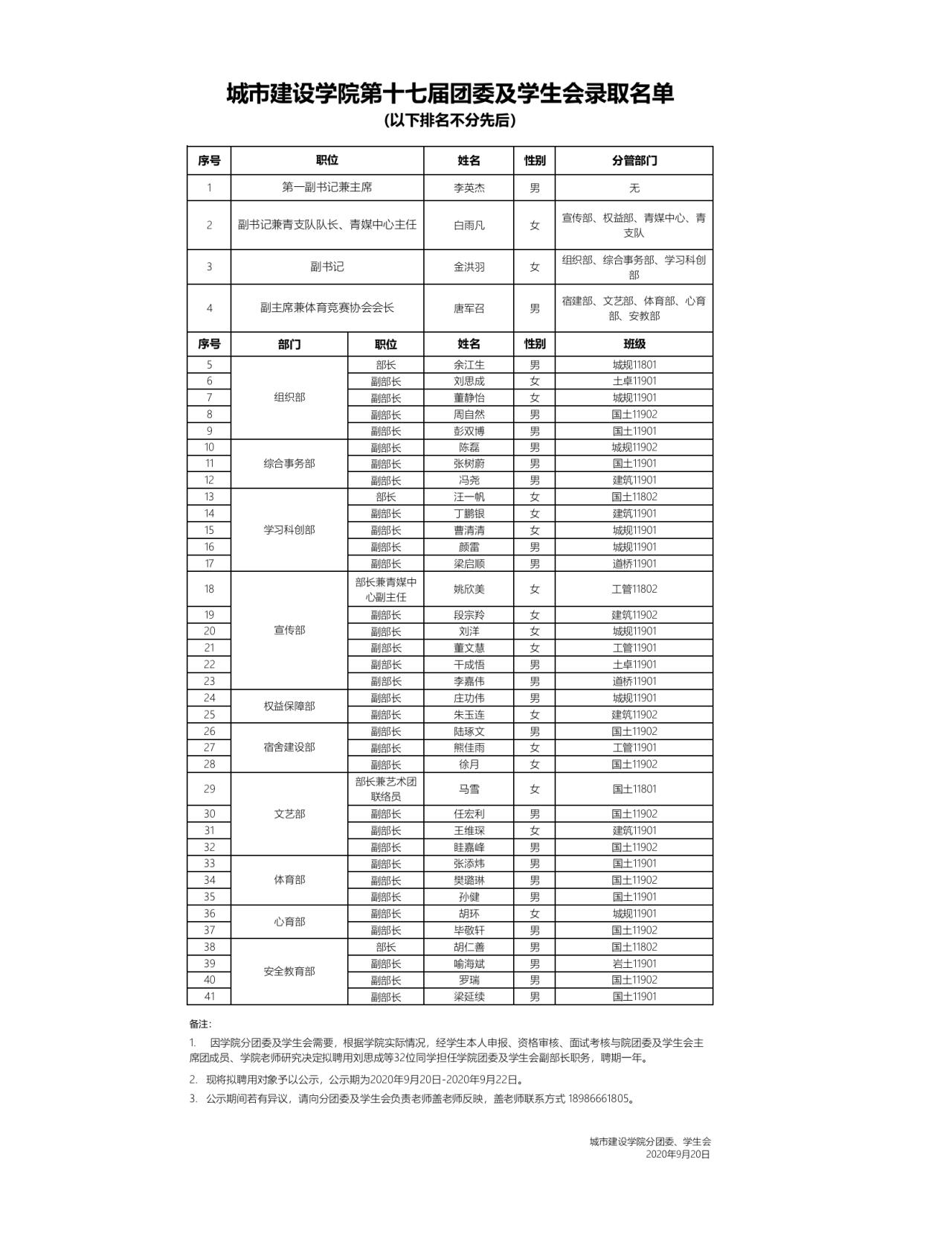 各位城建师生,大家上午好: 经员工本人申报、资格审查、面试考核与院团委员工会各部门部长、主席团成员、公司老师研究决定,bevitor伟德国际1946第十七届团委及员工会(东区)招新结果已出,详情公示如下: