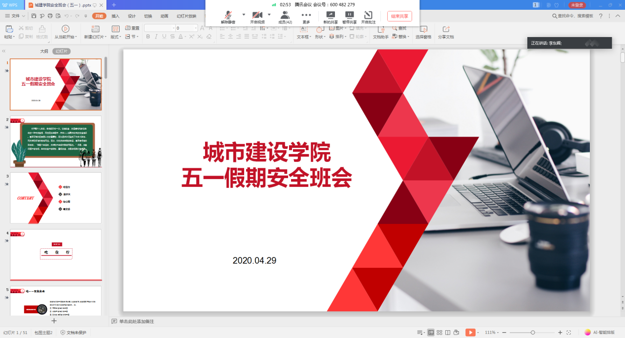 (通讯员 何儒权、周喆)疫情防控和五一小长假双重作用下如何引导员工确保自身安全?公司于4月28日—4月30日,以班级为单位召开了以“居家安全教育”为主题的线上班会和家长会。会议由各年级辅导员、班主任主持,全体员工及家长通过腾讯会议、QQ直播等方式参加。