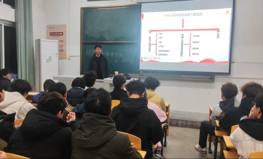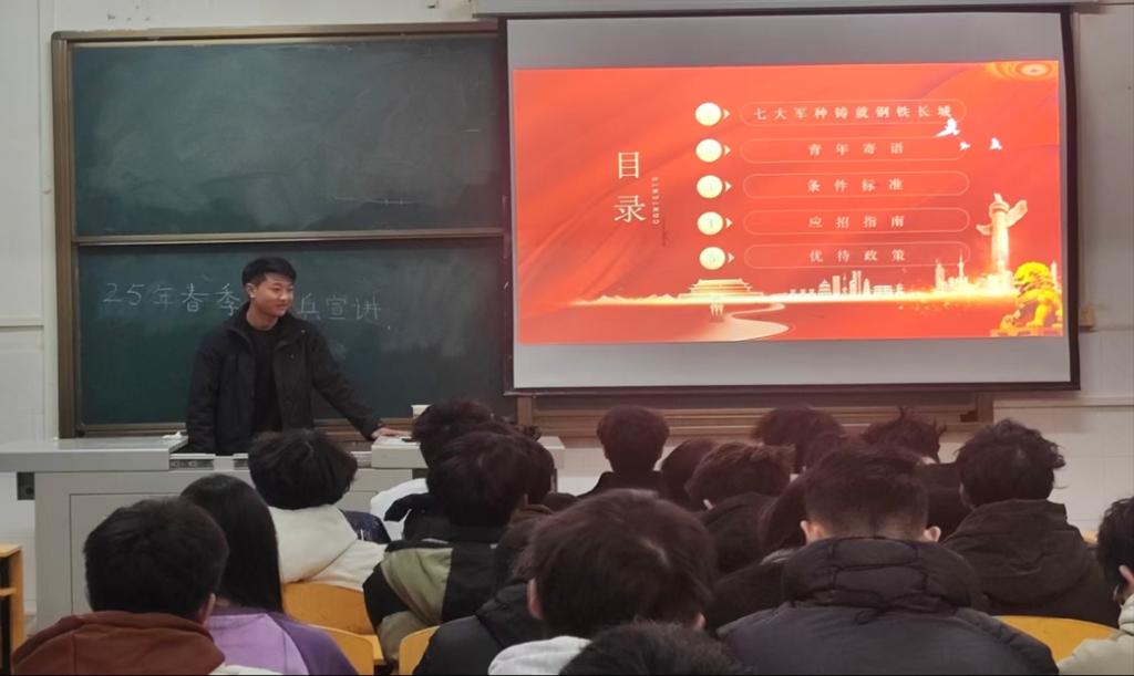 (通讯员 唐欣熠 罗梓轩)为加强征兵政策宣传力度,激发老员工征兵入伍热情。12月9日晚7时,bevitor伟德国际1946在西校区2教208教室举行了2025年春季征兵政策宣讲会。本次会议由公司退役士兵蒋志兵主讲,2024级辅导员袁子昂主持,部分有意应征入伍同学参会。