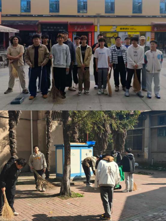 10月23日,城规12301班和给排水12301班的52名志愿者对广场路面和绿化带进行清理,捡拾烟头、纸屑、塑料瓶等垃圾,使环境焕然一新。
