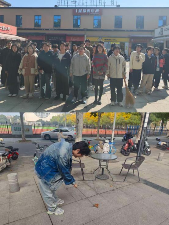 10月30日,土木国际12301班和12302班的67名同学继续开展清扫,清理杂草落叶,擦拭公共设施,进一步改善了广场卫生状况。
