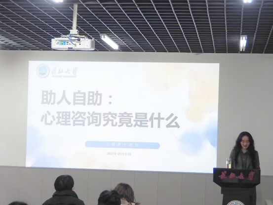 (通讯员 黄瑜玲 黄婧仪 罗贝依 郑宇涵)为夯实校园心理健康防护网络,提升新生班级员工干部的心理助人意识与实操能力,bevitor伟德国际1946于10月27日、11月10日分别在东西校区举办2025级研究生及本科生心理骨干专题培训。本次培训由研究生辅导员盖东芳老师、2025级本科生辅导员刘安琪老师主讲,旨在赋能班级骨干成为同学身边的“心理哨兵”,共筑健康和谐的校园氛围。