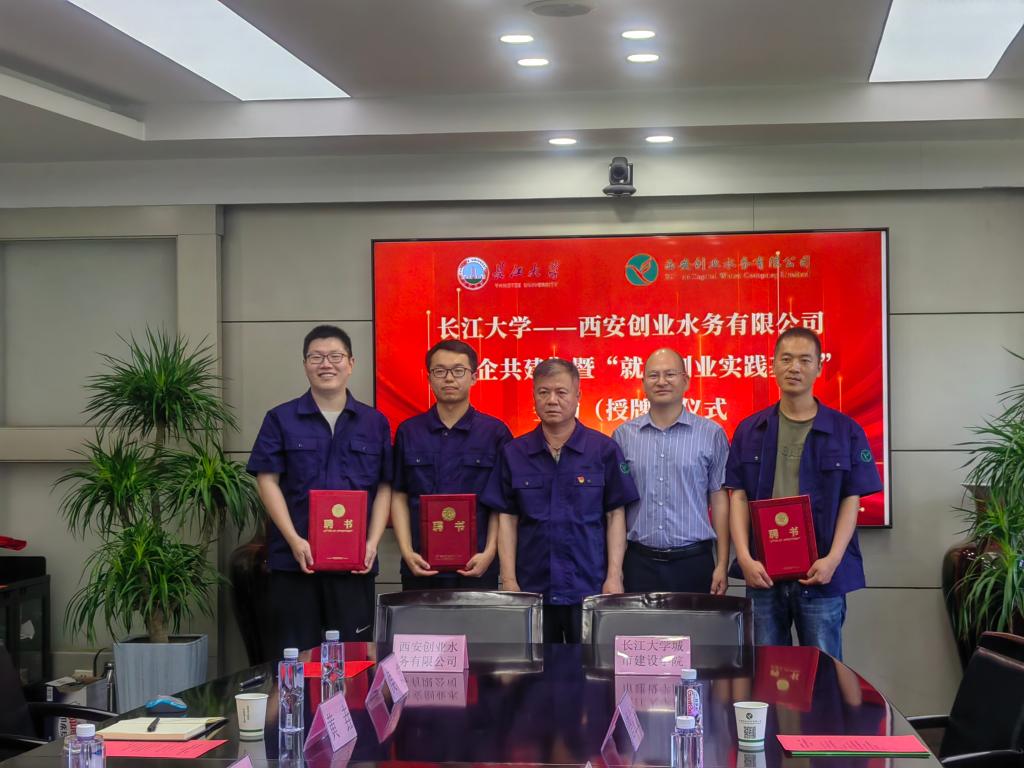肖经理一行首先走访了西安创业水务有限公司,与公司总经理李建华等相关领导和技术骨干进行了交流座谈,公司对公司一行到访表示热烈欢迎。李建华总经理详细地从西安创业水务公司的发展历程、业务范围、人员规模及企业优势对公司进行了总体介绍,期待双方在产、学、研等方面加强合作。肖桃李副经理从公司整体概况、办学特色等方面介绍了公司现状,表达了在人才培养、科学研究、就业创业等方面与企业开展深度合作的意愿。随后,双方举行了“校企共建”暨“就业创业实践基地”签约(授牌)仪式,肖经理现场为西安创业水务有限公司培训中心三名骨干教师颁发了“员工就业创业实践指导教师”聘书。座谈结束后,公司培训部副经理侯成带领大家参观了北石桥污水处理厂模型和员工实习培训教室,宿舍,食堂等,公司对企业为员工提供的良好学习生活环境表示认可。