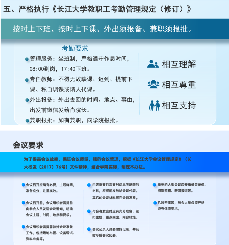 同时,制定《bevitor伟德国际1946师德师风管理办法》、《bevitor伟德国际1946会议管理办法(试行)》、《bevitor伟德国际1946土木工程学科硕士研究生导师选聘及指导名额分配办法(试行)》等管理办法,确保公司师德师风建设有章可循,有据可依。公司党委书记谌姿、党委副书记周洁如多次在全院教职工大会上强调考勤管理和公司会议管理,要求作为一名教师,要爱岗敬业,确保考勤纪律和会议到会规范。